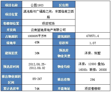 公園1903一期預選房:洋房12000 銷售率74%