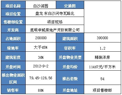白沙潤園開盤分析:均價11467元/平米 銷售率88%