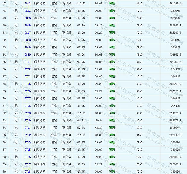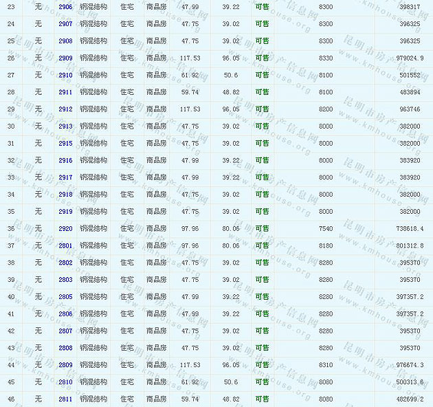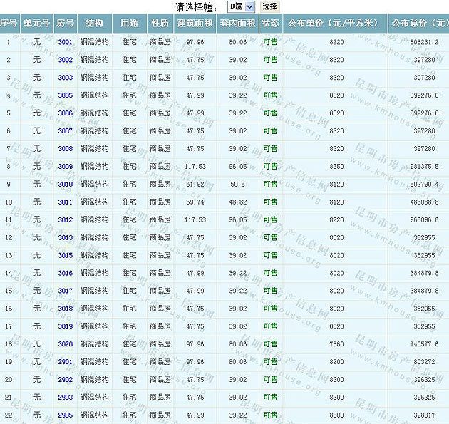 根據(jù)云南省物價局關(guān)于發(fā)布《云南省商品房銷售明碼標價實施細則(試行)》的通知,現(xiàn)將該項目商品住房的準售房源及每套房屋價格向社會公布,房地產(chǎn)開發(fā)企業(yè)應(yīng)嚴格按照公布價格,商品房銷售明碼標價實行一套一標。商品房經(jīng)營者應(yīng)當對每套商品房按照建筑面具進行明碼標價,否則,房產(chǎn)登記機關(guān)不予登記備案。準售房源及房價信息如下: