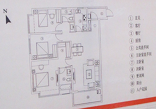 項(xiàng)目開放了129平米的C戶型和97平米的B戶型兩個樣板房,項(xiàng)目為帶裝修交房,交房標(biāo)準(zhǔn),裝修標(biāo)準(zhǔn)在樣板房均有說明。129平米的C戶型,三房兩廳兩衛(wèi)配置,套內(nèi)面積約103平米,戶型方正,帶入戶花廳,餐廳與客廳相連,客廳并接有超大陽臺,通透采光良好,三個臥室分布在同一側(cè),主臥帶有更衣室、洗手間,戶型結(jié)構(gòu)合理。