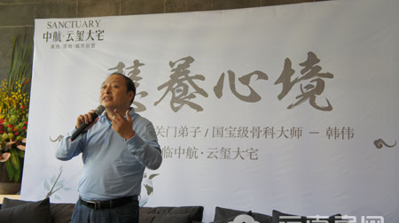9月23日下午2點,“慧養(yǎng)心境——中航·云璽大宅養(yǎng)生季”系列活動在中航·云璽大宅營銷中心隆重舉行。本次活動特邀“周總理保健醫(yī)生關(guān)門弟子/國寶級骨科大師——韓偉先生”親臨現(xiàn)場,與近300名中航·云璽大宅VIP客戶,現(xiàn)場分享/體驗“正脊按摩法”的神奇功效。