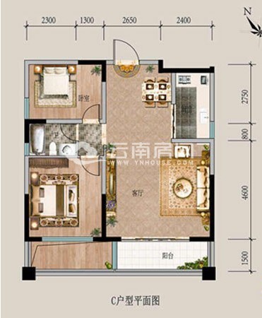 戶型推薦:C戶型2室2廳1廚1衛(wèi)1陽(yáng)臺(tái)約86.46平米(3-11層)