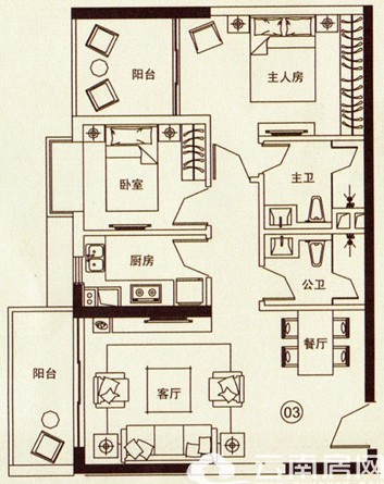 戶(hù)型介紹:戶(hù)型方正,主臥和客廳分別配有一個(gè)生活陽(yáng)臺(tái),方便生活起居,也保證了通風(fēng)和采光;主衛(wèi)與分衛(wèi)的設(shè)計(jì),使得家具環(huán)境更整潔;此外,廚房配有窗戶(hù),通透舒適。