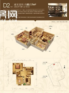 戶型推薦:D22室2廳1廚1衛(wèi)約80.17平米