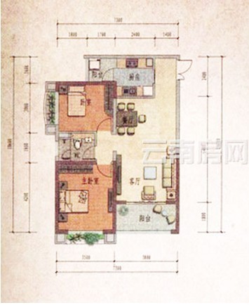 戶型推薦:J戶型2室2廳1廚1衛(wèi)1陽臺約71.73平米