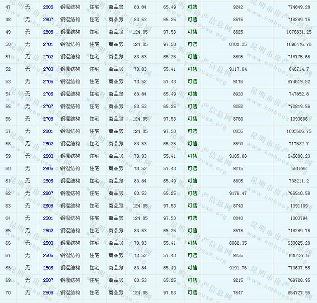 根據(jù)云南省物價(jià)局關(guān)于發(fā)布《云南省商品房銷售明碼標(biāo)價(jià)實(shí)施細(xì)則(試行)》的通知,現(xiàn)將該項(xiàng)目商品住房的準(zhǔn)售房源及每套房屋價(jià)格向社會(huì)公布,房地產(chǎn)開(kāi)發(fā)企業(yè)應(yīng)嚴(yán)格按照公布價(jià)格,商品房銷售明碼標(biāo)價(jià)實(shí)行一套一標(biāo)。商品房經(jīng)營(yíng)者應(yīng)當(dāng)對(duì)每套商品房按照建筑面具進(jìn)行明碼標(biāo)價(jià),否則,房產(chǎn)登記機(jī)關(guān)不予登記備案。準(zhǔn)售房源及房?jī)r(jià)信息如下: