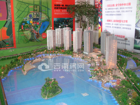 小編此次踩盤是直接從距離安寧3公里的昆鋼乘坐17路公交,經(jīng)過大約10分鐘車程,在大巷口站下車,并步行5分鐘先到達(dá)位于安寧百花西路上電力大廈對面,百花公園入口旁的項目售樓部了解具體情況。經(jīng)置業(yè)顧問介紹:“東湖·第一城占地面積27000多平米,容積率4,綠地率45%,由7棟高層住宅組成,總戶數(shù)1639戶,車位數(shù)700多個,戶型面積從74-131平米,目前大約還剩200余套房源,均價5300元/平米!