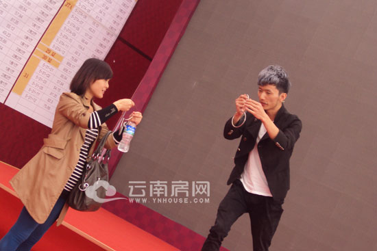 在抽號(hào)的間隙中,帥氣的魔術(shù)師便走上舞臺(tái)為購(gòu)房者表演,他手拿一個(gè)KFC的外賣袋,首先表演了如何將裝入袋中的香檳變沒,然后又在極短的時(shí)間內(nèi),將香檳變回。但是,對(duì)于早已經(jīng)看慣各種魔術(shù)表演的購(gòu)房者來(lái)說(shuō),他們很容易的便看出了其中的蹊蹺,并未被魔術(shù)師的“障眼法”所迷惑。魔術(shù)師在表演的過程中不時(shí)與觀眾互動(dòng),風(fēng)趣幽默的表演讓等待選房的時(shí)間過得比想象中快。