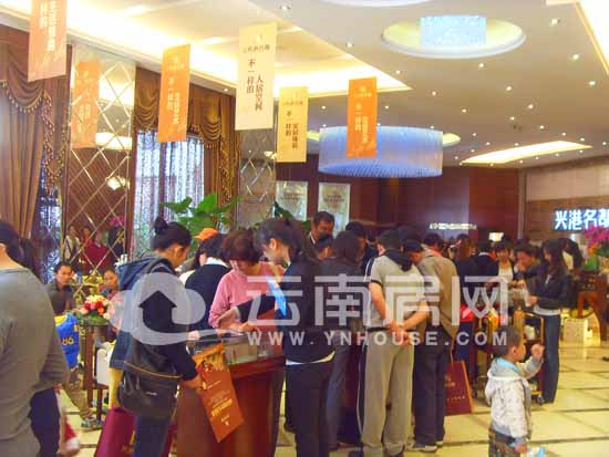 當(dāng)云南房網(wǎng)小編趕赴興港名都營(yíng)銷(xiāo)中心的時(shí)候,現(xiàn)場(chǎng)已經(jīng)十分熱鬧。興港名都售樓部前面拱門(mén)高立,彩旗飄飄,一派喜慶。穿過(guò)高立的拱門(mén),從主入口進(jìn)去,一路上鋪就的紅地毯指引著大家前去參觀營(yíng)銷(xiāo)中心沙盤(pán)及戶(hù)型的立體模型。沙盤(pán)前已經(jīng)聚集了不少對(duì)項(xiàng)目感興趣的客戶(hù),置業(yè)顧問(wèn)們東奔西走地給每一位客戶(hù)做著詳細(xì)的疑問(wèn)解答,現(xiàn)場(chǎng)忙碌而有序。