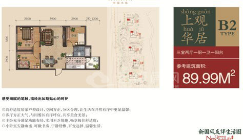 B2戶型,設(shè)計(jì)為三室兩廳一廚一衛(wèi)一陽臺,面積約89平米左右,為高舒適度居家戶型設(shè)計(jì),戶型精簡干練,并且實(shí)用經(jīng)濟(jì),是值得推薦的戶型之一。