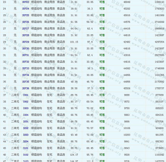 南窯鑫都韻城Ⅰ商品房準售房源及房價公示