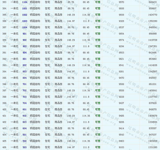 南窯鑫都韻城Ⅰ商品房準(zhǔn)售房源及房價公示