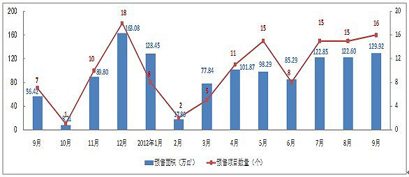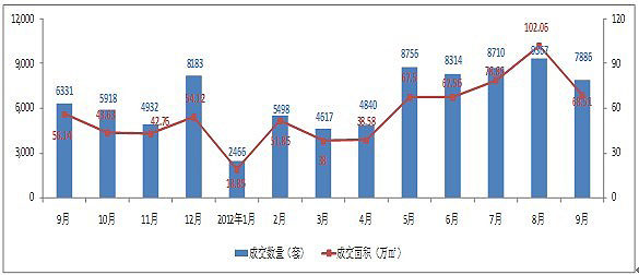 圖2-1:2012年9月房地產(chǎn)供應(yīng)面積變化(數(shù)據(jù)來(lái)源昆明市房產(chǎn)信息網(wǎng),至祥研究中心整理)