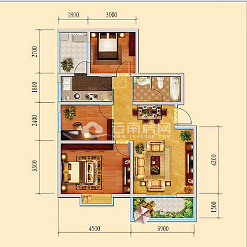 A-1戶型為3房2廳1廚1衛(wèi),90.7平米,此戶型布局緊湊,廚房與生活陽臺相連,生活便捷;客廳與景觀陽臺連接,采光通風有保證;衛(wèi)生間采用干濕分離設(shè)計;但此戶型轉(zhuǎn)角過多,過道空間狹長,面積有所浪費。