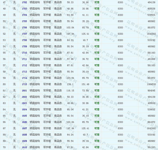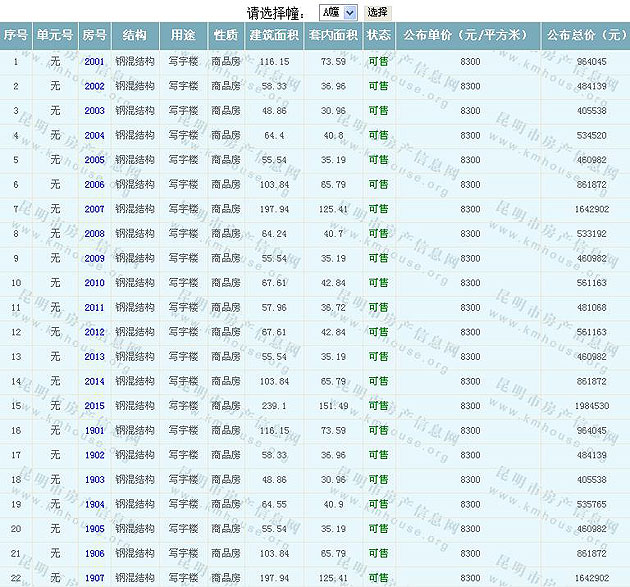 根據(jù)云南省物價局關(guān)于發(fā)布《云南省商品房銷售明碼標價實施細則(試行)》的通知,現(xiàn)將該項目商品住房的準售房源及每套房屋價格向社會公布,房地產(chǎn)開發(fā)企業(yè)應(yīng)嚴格按照公布價格,商品房銷售明碼標價實行一套一標。商品房經(jīng)營者應(yīng)當對每套商品房按照建筑面具進行明碼標價,否則,房產(chǎn)登記機關(guān)不予登記備案。準售房源及房價信息如下:
