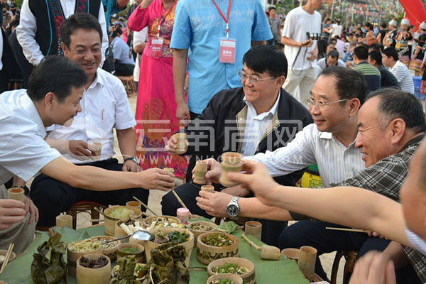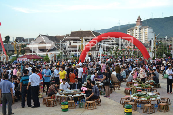 揭牌儀式結(jié)束后,來自各各政府機(jī)關(guān)單位的領(lǐng)導(dǎo)們?cè)诩瘯?huì)廣場(chǎng)前參加“民族美食大賽”晚宴,品嘗來自西雙版納各各鄉(xiāng)鎮(zhèn)美食參賽隊(duì)烹制的地道美食,并在十二支美食參賽隊(duì)伍但中評(píng)選出優(yōu)勝隊(duì)伍。
