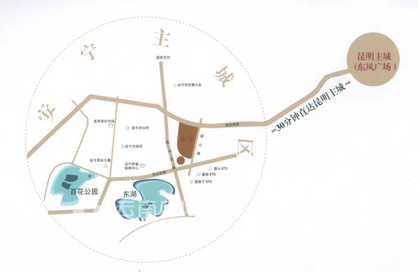 首領(lǐng)公館項目,位于安寧老城東大門戶門位置,由各條交通要道交匯組成的地塊之上。出小區(qū)向東自駕車走昆安高速,大約半小時就能到達昆明市中心;向南距離昆鋼只有3公里距離;向西就直接進入安寧老城核心區(qū);向北走景觀大道,10分鐘可到溫泉。從位置和交通的優(yōu)勢上看,是有那么點“首領(lǐng)”的味道。