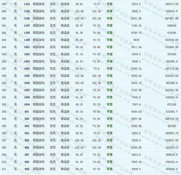 碧雞名城9棟10棟準(zhǔn)售房源及房?jī)r(jià)公示