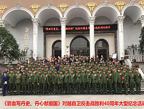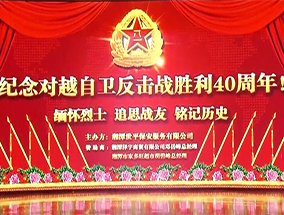 2019年3月16日下午三點(diǎn),在湘潭市華都國際大酒店金色大廳,由湘潭世平保安服務(wù)有限公司主辦了《碧血寫青史、丹心獻(xiàn)祖國》對越自衛(wèi)反擊戰(zhàn)勝利40周年大型紀(jì)念活動。近四百多名退伍老兵參加此次活動,主辦方還分發(fā)了紀(jì)念品,安排了豐富多彩的文藝演出,最后宴請到會的退伍老兵。會后參會老兵深有感觸,祖國和人民沒有忘記他們?yōu)榫S護(hù)國家的安危做出的貢獻(xiàn)!