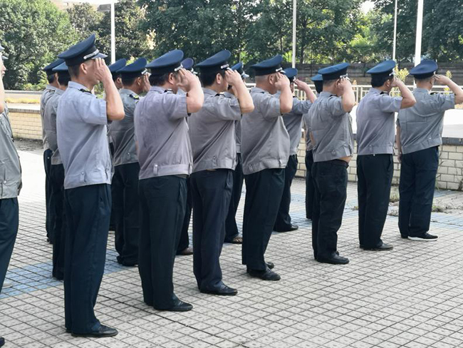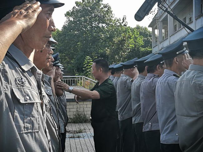 2019年8月11日,世平保安公司組織部分保安隊(duì)員分批進(jìn)行例行的軍事訓(xùn)練,董事長(zhǎng)方世平親自帶隊(duì),并逐一指導(dǎo)規(guī)范動(dòng)作,確保隊(duì)員以最佳狀態(tài)為服務(wù)單位提供高質(zhì)量的保安服務(wù)。